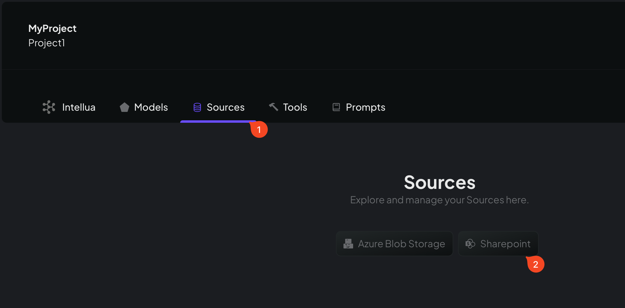 Go back to your project and click sources and then press Sharepoint. Continue by filling in the form and authenticating Sharepoint.
