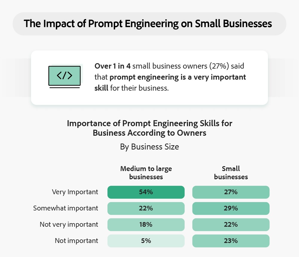 • Investeer in opleiding en bewustwording rond prompt best practices binnen je teams. (Steeds meer organisaties bieden trainingen; niet voor niets zou 52% van de kleine bedrijven bereid zijn interne kandidaten hierin op te leiden .)