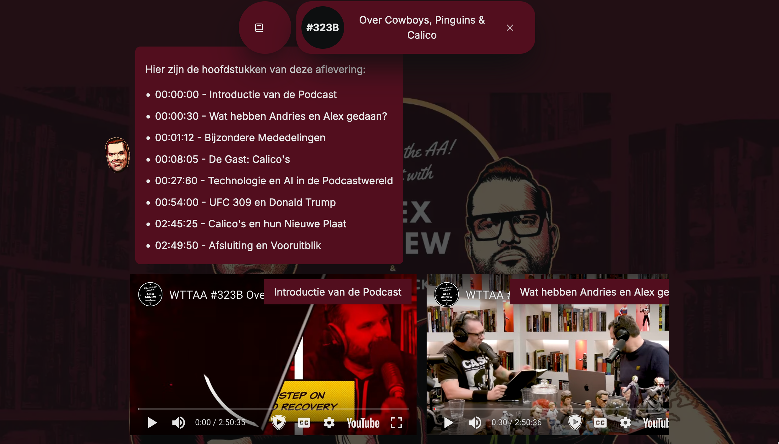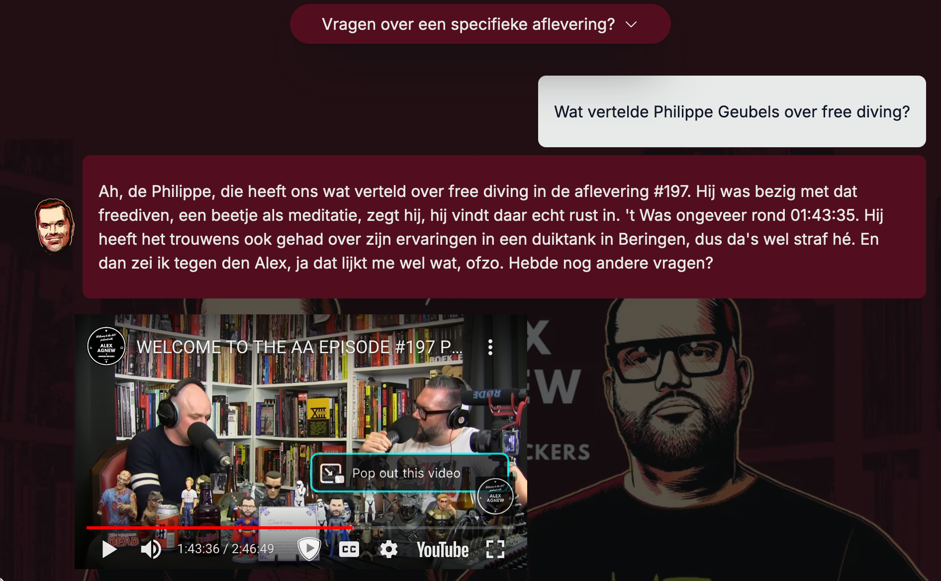 We’re always looking for innovative ways to connect audiences with rich, valuable content. That’s why we’re excited to introduce our new chatbot for the popular podcast "Welcome to the AA" hosted by Alex Agnew and Andries Beckers. This unique tool allows fans and newcomers alike to dive into the entire archive of conversations and humor at the heart of the show.